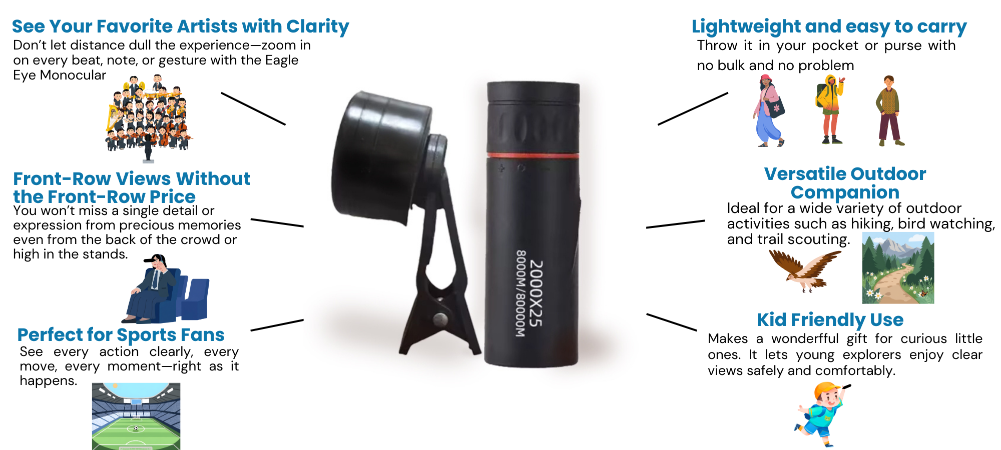 From hikers and bird watchers to sports fans and concertgoers, the Eagle Eye Monocular is a favorite among customers who appreciate its performance and versatility.